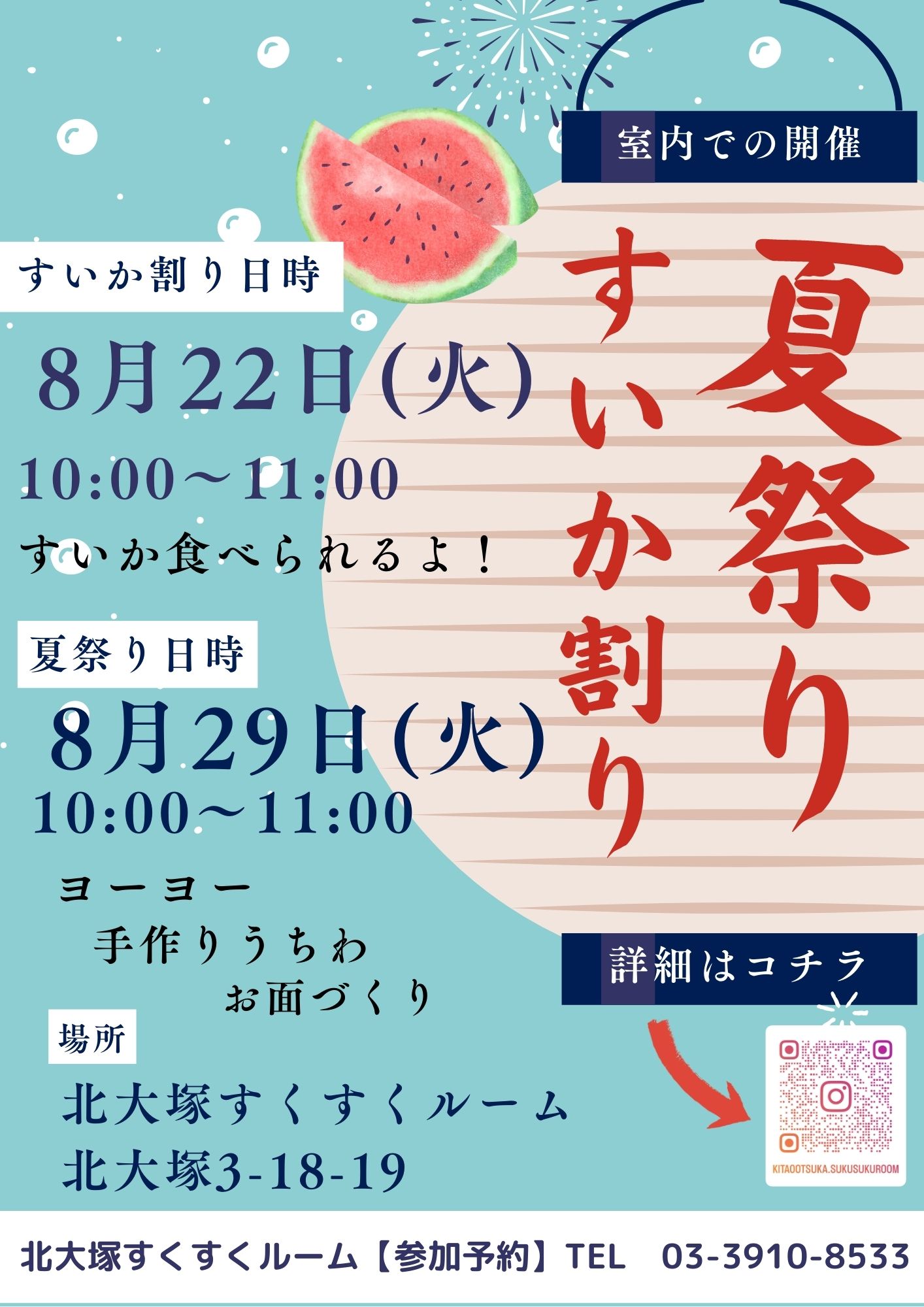 - イベントスイカ割り【8月22日(火)】、夏祭り【8月29日(火)】のご案内。詳しくはこちらをクリック