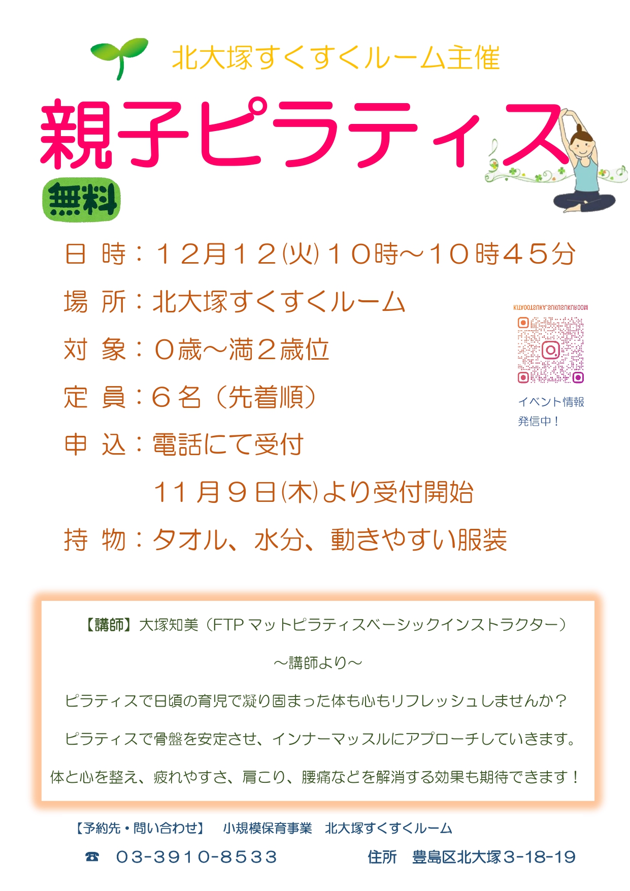 - イベント親子ピラティスのご案内。【12月12日(火)】詳しくはこちらをクリック